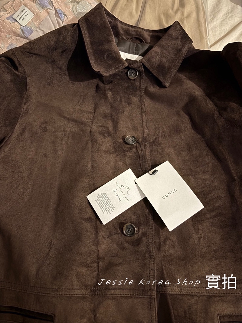 *米色在途/深棕現,有實拍*韓國東大門正品代購 OUNCE 正韓 闆娘自留款 質感麂皮翻領外套