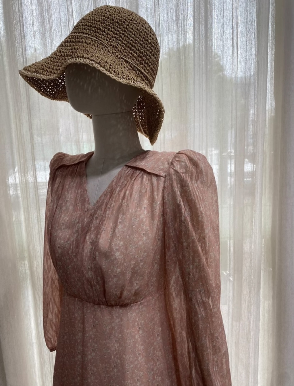 *粉色在途,下方頁面有實拍* 韓國東大門正品 I MISS YOU 正韓 優雅V領粉色紋理收腰洋裝