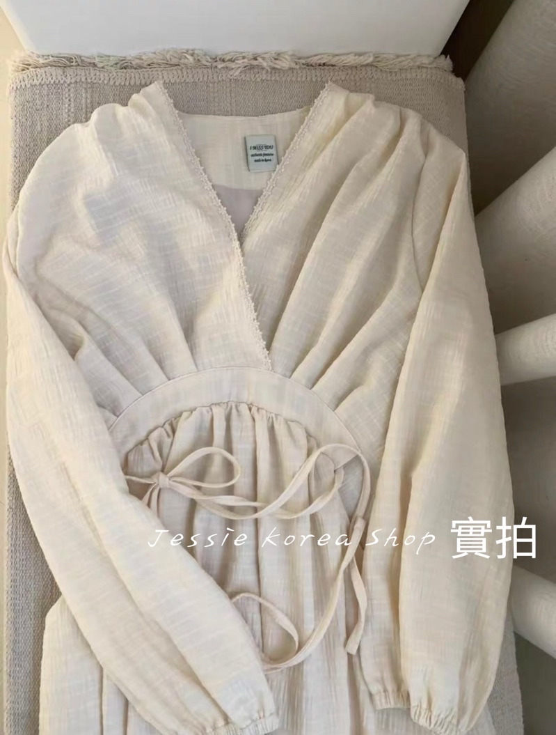 *黑色現*有實拍*韓國東大門正品代購 I MISS YOU 正韓 優雅氣質V領蕾絲花邊紋理素色洋裝